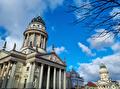 We zien ook nog de Ampelmann (verkeerslicht uit DDR) en een communistische ster die tijdens een revolutie uit Praag is gekomen. Dan gaan we naar de Gendarmermarkt, maar helaas is die in renovatie. We kunnen uiteraard de Deutscher en de Französischer Dom wel zien, het Konzerthaus is alleen ingepakt. Met zoveel mooie gebouwen in de stad, wordt er eigenlijk altijd wel 1 gerenoveerd natuurlijk.