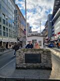 Na een heerlijke nacht is het helaas tijd om op te staan, we zijn hier tenslotte wel om iets te zien, maar niet voordat we het ontbijt uitgebreid hebben verkend. Gisteravond toch besloten om kaartjes voor de hop-on-hop-off bus te kopen, dus na het ontbijt wandelen we die kant op. De eerste stop wordt Checkpoint Charlie, een van de controle posten in de tijd van de Muur. Uiteraard even een foto en we lopen daar een beetje rond.