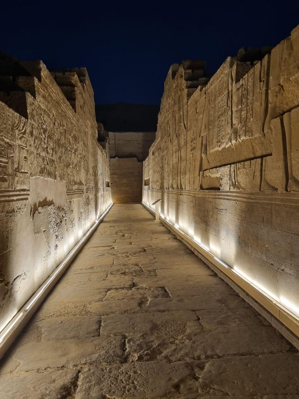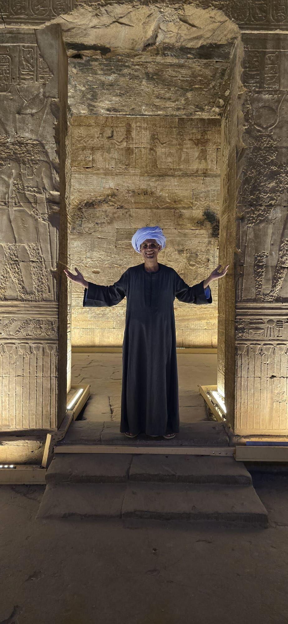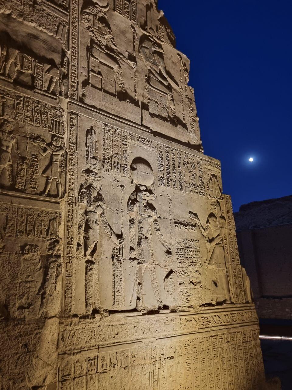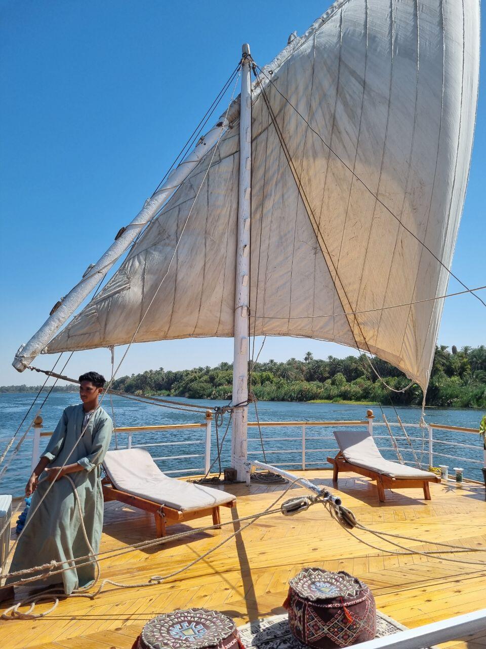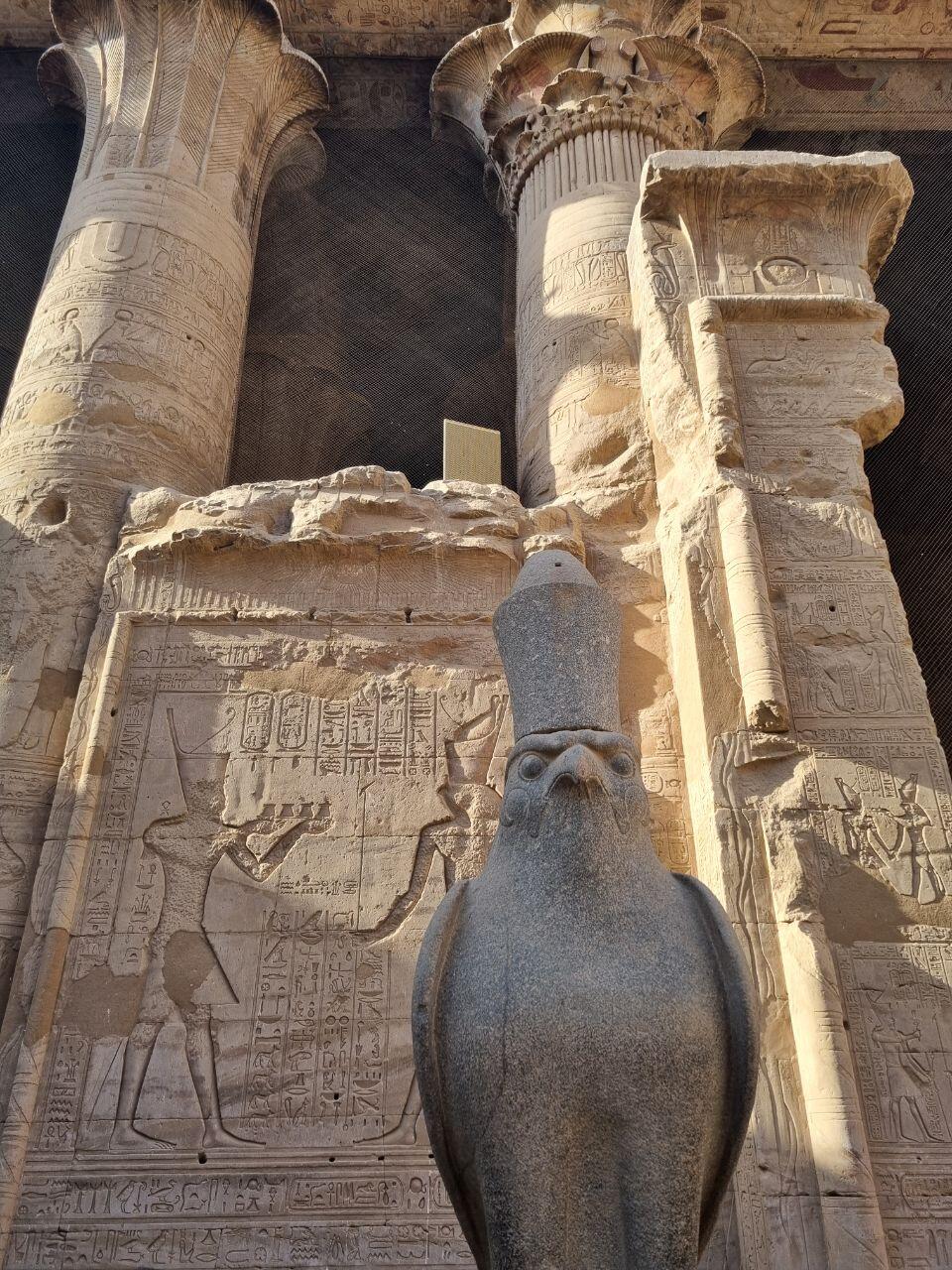Terug aan boord zitten we lekker aan dek in de zon tot de lunch geserveerd wordt. Het is heerlijk weer, niet te warm met een lekker briesje. We bereiken Edfu waar we de tempel bezoeken. De Tempel van Edfu is een van de best bewaarde oude tempels in Egypte en wordt beschouwd als een meesterwerk van de Ptolemaeïsche periode. Het tempelcomplex is indrukwekkend met prachtige reliëfs en standbeelden. We varen verder, genietend van de zonsondergang en doen een spelletje tot het diner wordt geserveerd. 'S avonds geeft onze gids Mohamed ons een cursus mummificeren, wat voor grote hilariteit zorgt.