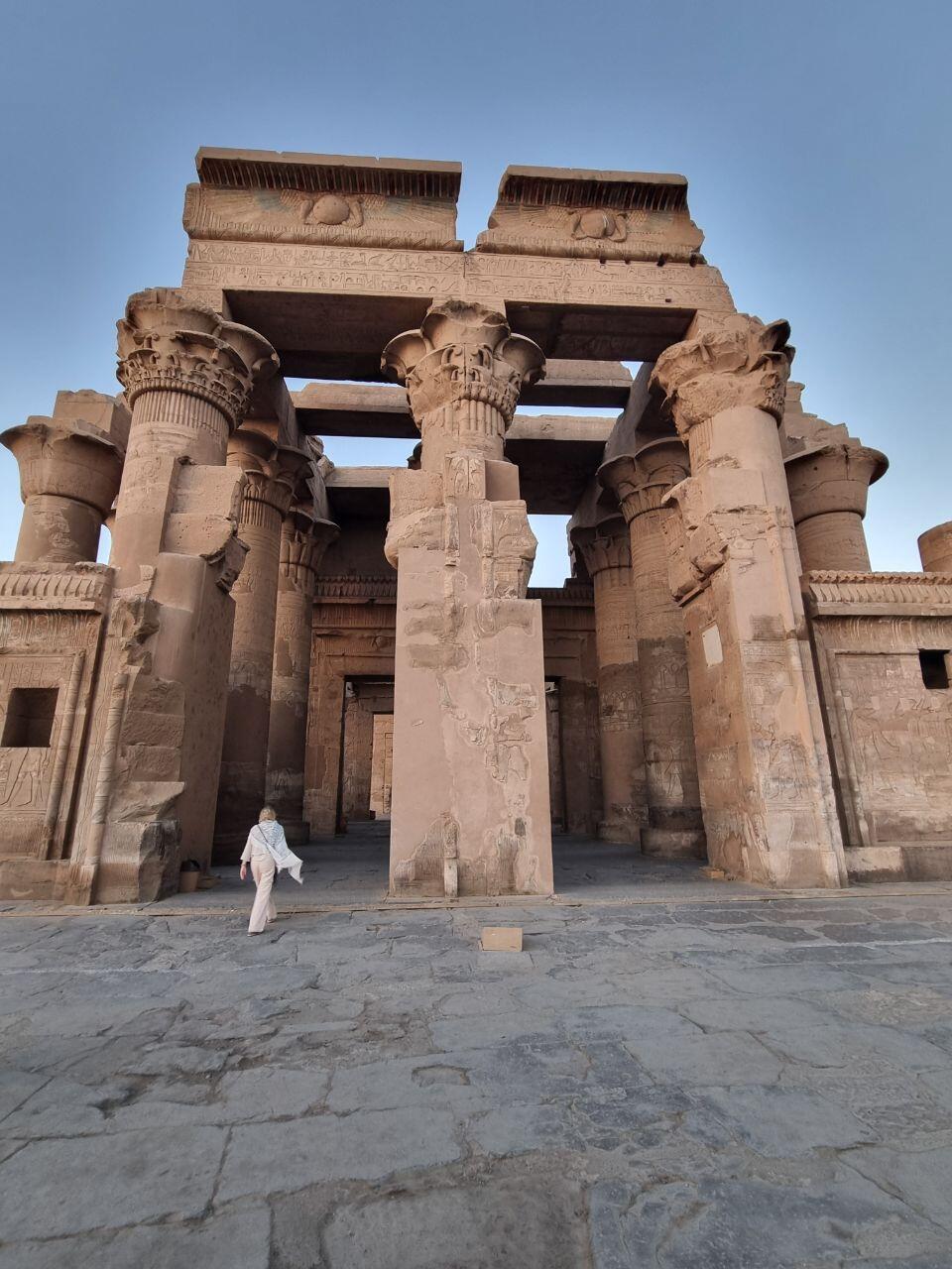 Aankomst in Kom Ombo, de plek waar vroeger de stad Pa Sebek lag, een belangrijke stad in de Egyptische geschiedenis ten behoeve van de goudhandel. Door dit letterlijk rijke verleden zijn hier mooie bouwwerken achtergebleven welke we bezoeken. Wij bezoeken de tempel met zonsondergang en gaan nog langs het museum voor krokodillen mummies wat er naast ligt. Terug aan boord, het schip ligt tegenover de tempel, kunnen we even opfrissen en dan aan het diner terwijl we verder varen.