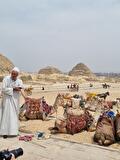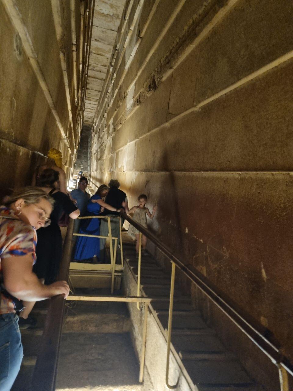 Prachtig! We vervolgen onze weg en stappen uit tussen de piramides van Cheops en Chefren. Na diverse foto's en een wandeling eromheen kunnen we de piramide van Cheops in. Extra kosten 1500 EGP.