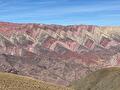 Gelukkig waren de uitzichten weer zo prachtig dat we vergaten daarvan te schrikken. Uiteindelijk kwamen we op het uitkijkpunt uit, en het was inderdaad prachtig! Niet alleen heeft deze bijzondere zevenkleurige berg hele mooie kleuren, maar door de vorm van de rotsformaties is er een spectaculair patroon in die kleuren te zien. Ongelooflijk dat de natuur dit voor elkaar krijgt!