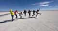 We kwamen rond de middag aan in Purmamarca, waar we onze bagage alvast in ons hotel neerzetten. Dit hotel – Manantial del Silencio – is eigendom van de neef van onze koningin Máxima, en we zagen dan ook een aantal foto’s van haar met haar schoonfamilie tijdens een bezoek aan dit hotel. Hierna vervolgden we onze weg naar het einddoel van deze dag, de Salinas Grandes zoutvlakte, gelegen op ca. 3500m. Hiervoor moesten we ook nog weer een flink stuk omhoog, maar daarna werd het landschap vlakker en leek het alsof er in de verte een groot meer lag: geen fata morgana, maar de Salinas Grandes. De bewolking was gelukkig in de bergen blijven hangen, op de zoutvlaktes scheen de zon uitbundig. Hierdoor staken de zoutvlaktes prachtig wit af bij de blauwe lucht. Hoewel het erg hard waaide was het totaal niet koud. We hebben kort rondgelopen op de zoutvlakte, en er werden weer heel wat foto’s gemaakt!