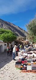 Op onze laatste ochtend in de Andes brachten we ’s morgens een bezoek aan de markt van Purmamarca. Hier hebben we natuurlijk nog flink ingeslagen qua souvenirs zoals aardewerk en handgeweven omslagdoeken van lama- of schapenwol. Vanaf het knusse dorpspleintje liepen we één van de straatjes in voor de lunch, een snelle empeñada van de barbecue, alvorens we vertrokken naar het plaatsje Humahuaca. Hier stapten we over op 4WD’s, omdat we naar een uitkijkpunt gingen vanwaar we een prachtig uitzicht zouden hebben op de Cerro de los Siete Colores (de Zevenkleurige Berg). De weg daarnaartoe was smal en onverhard met scherpe haarspeldbochten. Helaas mochten we niet zelf rijden, dus stapten we in bij een piepjong knulletje en hielden ons hart vast. Al heel snel bleek dat dit piepjonge ventje een uitstekende chauffeur was en voelden we ons volkomen veilig bij hem, ondanks dat we af en toe de afgrond in keken.