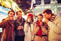 de gezellige kerstkraampjes, elk omringd door mensen in hun mooiste gebreide kleding die warme mokken glühwein drinken en genieten van traditioneel feestelijk eten.