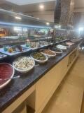 Tussen de stranduren door aten we graag bij het beachrestaurant, dat onderdeel was van het all-inclusive pakket. Hier stond een menu vol burgers, salades, pizza, köfte en kipgerechten. Eén keer per week draaide er zelfs een spit voor verse kebab. Het personeel was écht gastvrij: ze herkenden je snel, wisten je voorkeuren en soms stonden de drankjes al klaar voordat we ze besteld hadden.