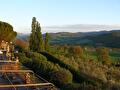 De laatste hotelovernachting van deze reis brachten we door in hotel Bramante, net buiten Todi en ook dit hotel was gevestigd in een oud landhuis. Ondanks het aangename voorjaarsweer brandde binnen gezellig de open haard. Onze kamer had een balkon en toen we de luiken openden keken we uit over het adembenemende landschap van Umbrië. Op het hotelterras dronken we nog een wijntje terwijl de zon langzaam onder ging en met een werkelijk heerlijk diner sloten we deze laatste volle dag in Umbrië af.