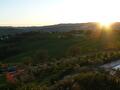 Toen we de volgende ochtend wakker werden was de zon net op en zagen we de eerste zonnestralen over de omliggende heuvels kruipen. Pas nu konden we zien hoe mooi de omgeving was waarin we beland waren! De heuvels met cipressen en olijfbomen baadden in het ochtendlicht, het beloofde een zonnige lentedag te worden.