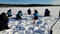 's Middags staat ijsvissen op het programma. Met de handboor maken wij een gat in het ijs om vervolgens met een draad en een stukje aas zalm proberen te vangen. Ik heb lang zitten turen, maar helaas niks gevangen. Na deze activiteit doen wij de sneeuwschoenen onder en maken een korte wandeling. Het wandelen door de diepe sneeuw op de ‘tennisrackets’ valt trouwens nog niet mee.
