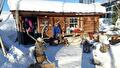 De volgende ochtend staat de huskysafari gepland, voor de meeste van ons het hoogtepunt van deze studiereis. Als we aankomen horen wij de honden al blaffen, enthousiast dat ze zo mogen rennen. Maar eerst krijgen wij uitleg hoe de slede te besturen. Per slede is één persoon bestuurder en één persoon passagier. Halverwege de tour kunnen wij van plaats wisselen. Heel belangrijk is om te weten hoe te remmen en hoe mee te steppen om de honden te helpen als ze een heuvel op moeten.