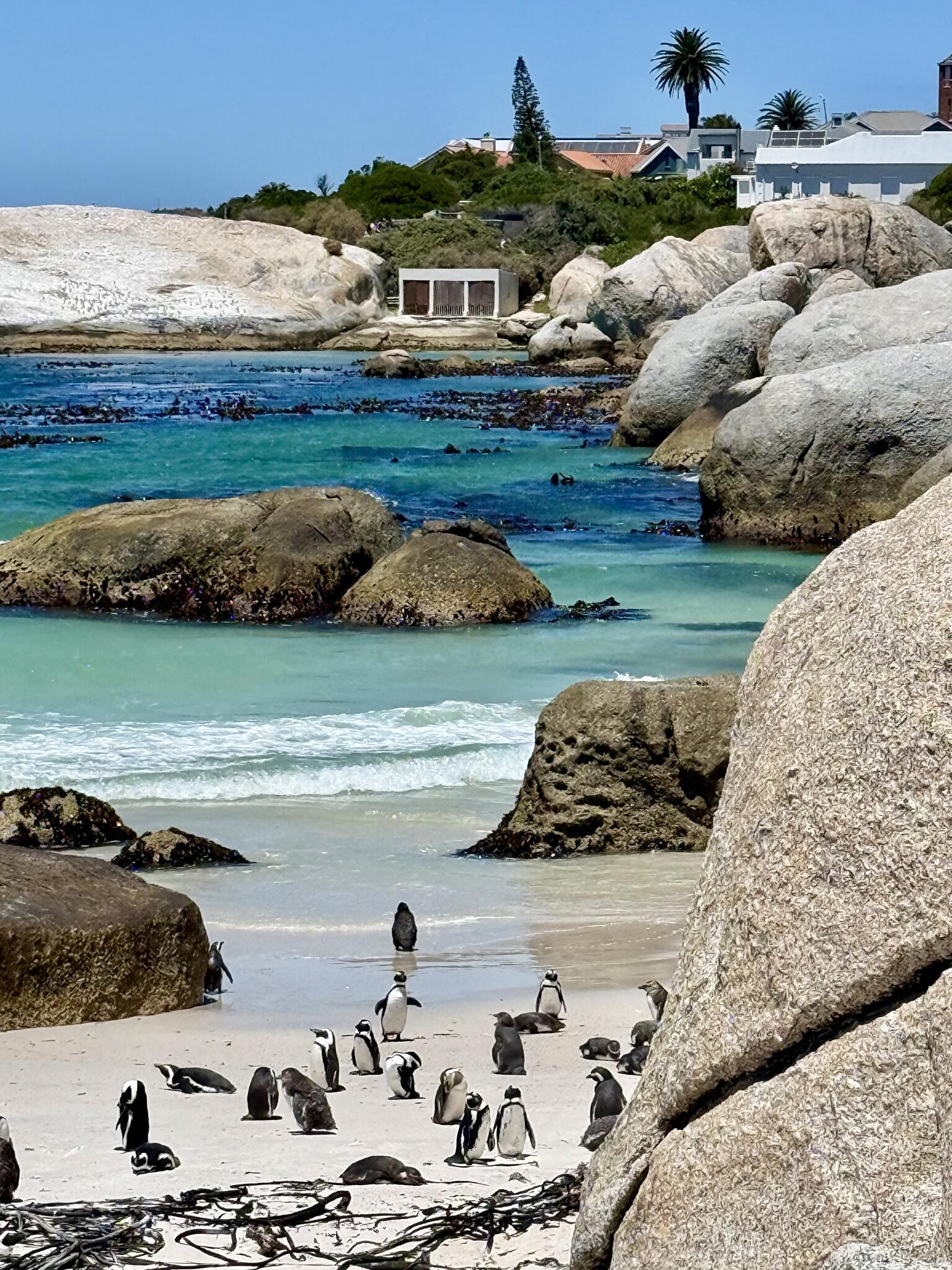 Doordat het enorm druk was op de Tafelberg de eerste dag, reden we de Chapman’s Peak route; een mooie route door de bergen en langs de kust en we bezochten Muizenberg Beach, het surfstrand met de mooie gekleurde huisjes en Boulders Bay met de Zuid Afrikaanse pinquins.
